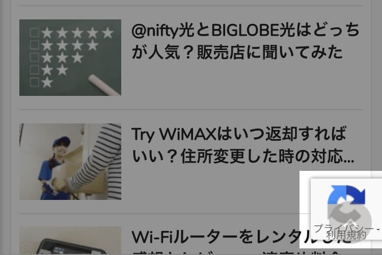 そしたら、ブラウザの画面右下にリキャプチャのロゴが常に表示されるんです。しかもページトップのボタンと被ってるじゃないですか。